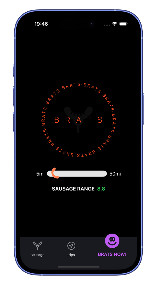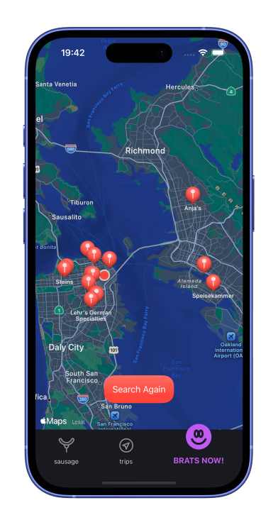 To help me find brats, I built an app. With one tap it finds and directs me to the nearest bratwurst.